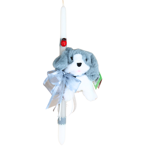 Πασχαλινή Λαμπάδα Σκυλάκι Κουτάβι με Ήχο και Κίνηση Γκρι Λευκό Χρώμα Λούτρινο 15cm