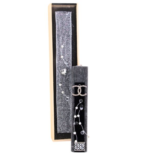 Λαμπάδα Πλακέ Γκρι Αρωματική με Διακοσμητικό CC σε Κουτί