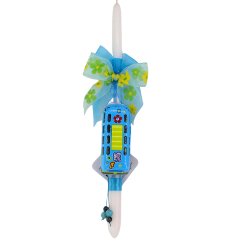 Πασχαλινή Λαμπάδα Λευκή με Μινιατούρα Μεταλλικό Αυτοκίνητο VW Flower Power Bus Με Φως και Ήχο Μπλε Πράσινο Χρώμα