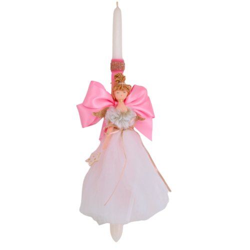 Πασχαλινή Λαμπάδα Λευκή με πάνινο αγγελάκι 40εκ