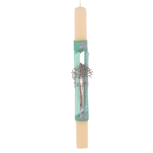 Πασχαλινή Λαμπάδα πλακέ εκρού με Διακοσμητικό μεταλλικό δέντρο ζωής 35εκ