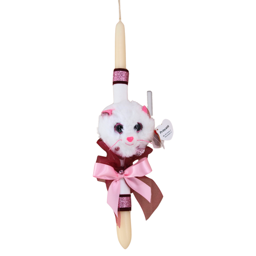 Πασχαλινή Λαμπάδα Ty Puffies Beanie Balls Super Cute Plush Puff Balls Λούτρινος Λευκή Ροζ Γατούλα 7cm