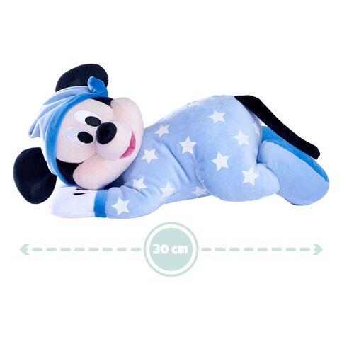 ΛΟΥΤΡΙΝΟ ΜΙΚΥ ΜΑΟΥΣ - Το χαριτωμένο λούτρινο παιχνίδι Μίκυ Μάους φοράει μπλε πιτζάμες με αστέρια και σκουφάκι ύπνου και έχει ξαπλώσει με το κεφάλι στα χέρια του για να κοιμηθεί.