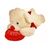 Είναι μπεζ και κρατάει μια κόκκινη καρδιά-μαξιλάρι, με μαλακή βελούδινη υφή που το καθιστά γλυκό και χαριτωμένο.