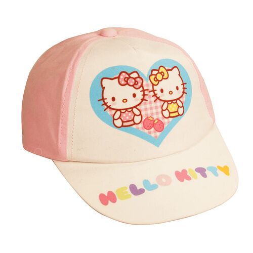 Ένα πανέμορφο καπέλο με την αγαπημένη Hello Kitty ! Το καπέλο στην περιοχή του κεφαλιού είναι χρώματος λευκού, το μπροστινό μέρος είναι ροζ και απεικονίζεται η Hello Kitty. Το καπέλο διαθέτει γείσο, η λειτουργικότητα του είναι για την προστασία του προσώπου από τον ήλιο. Στο πίσω μέρος του καπέλου υπάρχει λαστιχένιο λουράκι, ώστε να εφαρμόζει σωστά στο κεφάλι.