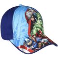 Ένα πανέμορφο καπέλο με τους αγαπημένους ήρωες : " Avengers" ! Το καπέλο στην περιοχή του κεφαλιού είναι κόκκινο-μπλε εναλλάξ, στο μπροστινό μέρος απεικονίζονται : από αριστερά ο Captain America, στη μέση ο Thor και στα δεξιά ο Hulk. Το καπέλο διαθέτει γείσο, όπου πάνω του απεικονίζεται ο Iron Man, η λειτουργικότητα του γείσου είναι για την προστασία του προσώπου από τον ήλιο. Στο πίσω μέρος του καπέλου υπάρχει αυξομειωτικό λουράκι, με την μορφή Κριτς-Κρατς, ώστε να εφαρμόζει σωστά στο κεφάλι.