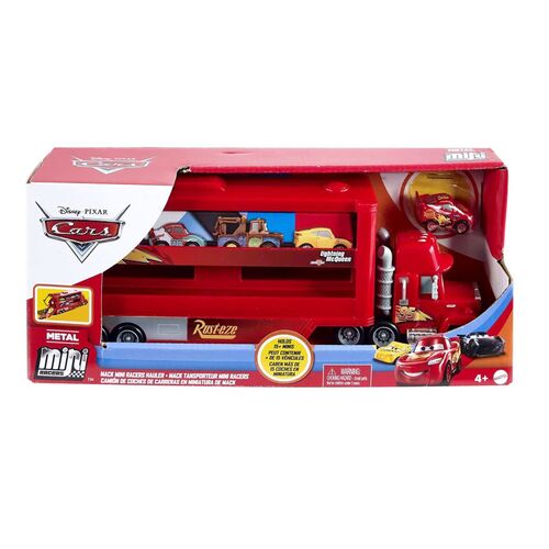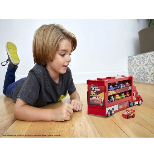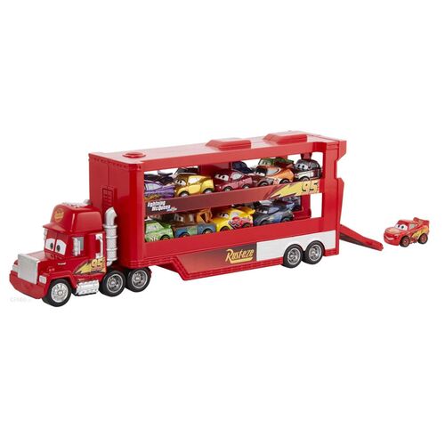Τα παιδιά μπορούν να πάρουν τα αγαπημένα τους μίνι αυτοκίνητα Disney•Pixar Cars στο δρόμο για περιπέτεια με αυτό το φορτηγό μεταφοράς. Ο Μακ  είναι ο μεταφορέας της Lightning McQueen που μπορεί να χωρέσει έως και 18 μεταλλικά micro cars (πωλούνται χωριστά) και διαθέτει μια ανοιγόμενη ράμπα που επιτρέπει στα αυτοκίνητα να εισέρχονται και να βγαίνουν. Το Φορτηγό για αυτοκίνητα έχει εμβληματικές λεπτομέρειες και μια εμφάνιση που θα αρέσει σε κάθε λάτρη της σειράς "Cars".