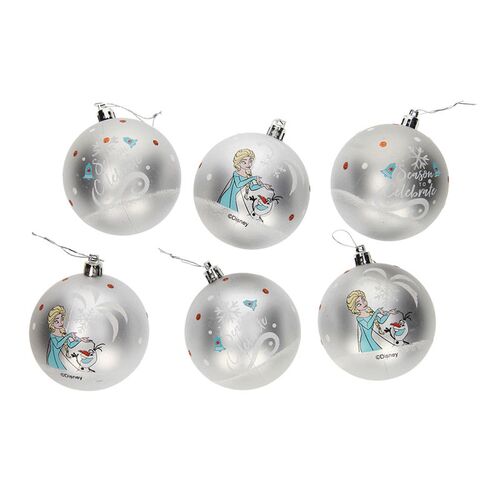 Frozen Χριστουγεννιάτικες Μπάλες Σετ 6 τεμαχίων Ασημί Χρώμα Disney