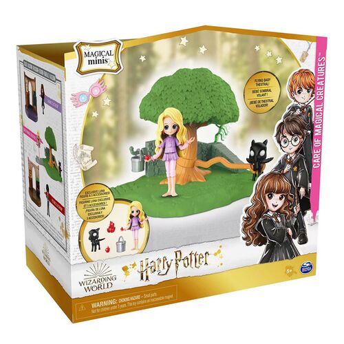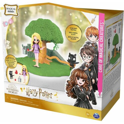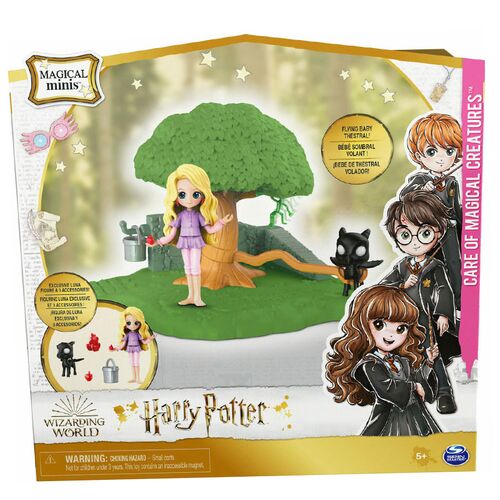 Φαντάσου να φροντίζεις μαγικά πλάσματα με τη Λούνα Λάβγκουντ και το σετ «Μάθημα Φροντίδας Μαγικών Πλασμάτων»! Το σετ περιλαμβάνει μια μοναδική φιγούρα Λούνα Λάβγκουντ ύψους 7,6 εκ. και τρία ειδικά αξεσουάρ, μεταξύ των οποίων ένα ιπτάμενο μικρό θέστραλ. Γίνε κι εσύ μικρή μάγισσα, μάγος ή μαγκλ και ζήσε τις αγαπημένες σου σκηνές από τη σειρά Χάρι Πότερ. Βάλε το μικρό θέστραλ στον κορμό του δέντρου και κάνε το να πετάξει γύρω από το δέντρο! Πιάσε τον κουβά από τον γάντζο και τάισε το θέστραλ με μήλα (περιλαμβάνονται). Η Λούνα μπορεί να κρατήσει ένα μήλο στο χέρι της και να ταΐσει το μικρό θέστραλ στο στόμα. Βρες τα πλάσματα που κρύβονται στο δέντρο. Τοποθέτησε τη Λούνα στο κέντρο ενεργοποίησης: το μπόουτρακλ εμφανίζεται μαγικά μέσα από το δέντρο! Το σετ «Μάθημα Φροντίδας Μαγικών Πλασμάτων» εξάπτει τη φαντασία με συναρπαστικό τρόπο. Προσάρμοσε το σετ στον εξωτερικό χώρο του Κάστρου Χόγκουαρτς (πωλείται ξεχωριστά) με το ειδικό μονοπάτι σύνδεσης (περιλαμβάνεται) και διεύρυνε τον προσωπικό μαγικό κόσμο σου με τα σετ «Μάθημα Ξόρκια» και «Μάθημα Μαγικά Φίλτρα» (κάθε σετ πωλείται ξεχωριστά).
