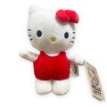 H Hello Kitty σε λουτρινο αρκουδάκι βελούδινο με κόκκινο ρούχο και φιόγκο.