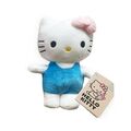 H Hello Kitty σε λουτρινο αρκουδάκι βελούδινο με μπλε ρούχο και φιόγκο.