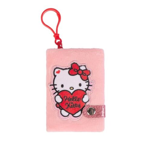 Ένα χαριτωμένο, βελούδινο σημειωματάριο σε σχήμα μπρελόκ , με κεντημένη εικόνα της Hello Kitty , με γραμμές, είναι το ιδανικό μέρος για σημαντικές σημειώσεις.