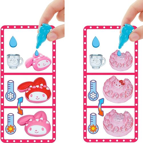 - Ανακατεύουμε, ανακατεύουμε, «σπάμε» το αυγό Gudetama και βάζουμε ένα κέικ στο φούρνο. Για μια γλυκιά έκπληξη, γεμίστε την πιπέτα ψησίματος με κρύο νερό και «παγώστε» το κέικ για να αποκαλύψετε μια διακόσμηση που αλλάζει χρώμα. Αλλάξτε το με ζεστό νερό! Βοηθήστε την κούκλα Éclair να σερβίρει νόστιμες φέτες κέικ στο τραπέζι που χωράει έως και 4 φίλους Sanrio!