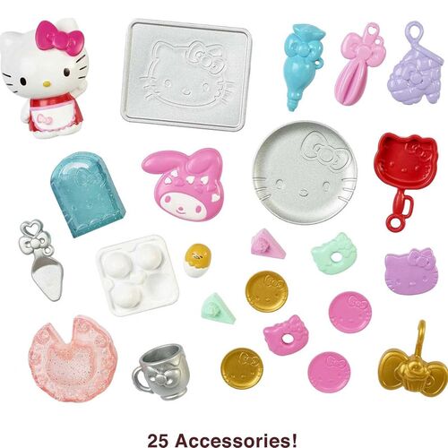 - Σετ παιχνιδιού 25 τεμαχίων που περιλαμβάνει φιγούρα Hello Kitty, κούκλα Éclair 25,4 εκ., φούρνο και άλλα αξεσουάρ ψησίματος όπως κέικ, γάντια φούρνου, ταψιά και άλλα.