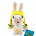 Ένα υπέροχο Rabbids, το οποίο φοράει ένα κίτρινο καπέλο με κοτσίδες και πράσινα φιογκάκια στα μαλλιά, ένα διασκεδαστικό λούτρινο για τα φανταστικά παιχνίδια των παιδιών !