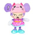 Η Λούτρινη Minnie Mouse είναι μοβ και φοράει ροζ πουά φόρεμα και ροζ σκουφάκι γατάκι