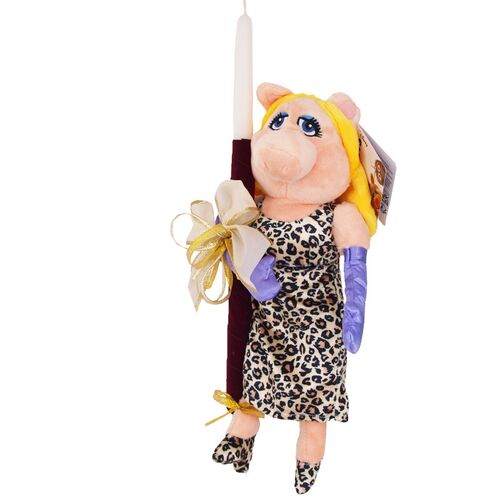 Πασχαλινή Λαμπάδα Miss Piggy Με Λεοπάρ Φόρεμα Muppet Show Λούτρινο 32cm