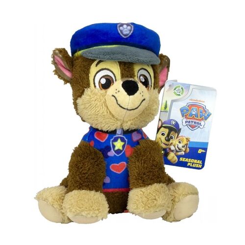 Πρόκειται για ένα χαριτωμένο λούτρινο του αγαπημένου ήρωα Chase από το Paw Patrol, ντυμένο με την κλασική αστυνομική στολή του και διακοσμημένο με καρδιές, που του δίνουν έναν πιο γλυκό και τρυφερό χαρακτήρα, ιδανικό για δώρο.