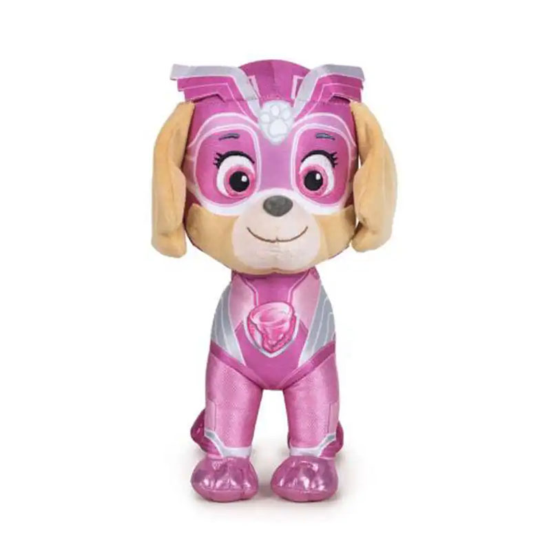 Το λούτρινο απεικονίζει τη Skye σε ροζ/ροζ-μωβ στολή Super Paws, με χαρακτηριστική μάσκα, φτερωτή στολή και σχεδιασμό που αποτυπώνει τον δυναμισμό της ως «κουτάβι διάσωσης».