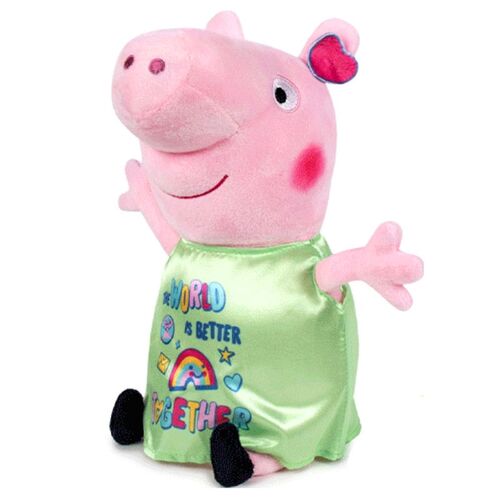 Πέππα η Γουρουνίτσα Με Λαχανί Σατέν Φόρεμα The World Is Better Together ι "Peppa Pig" Λούτρινο 30cm