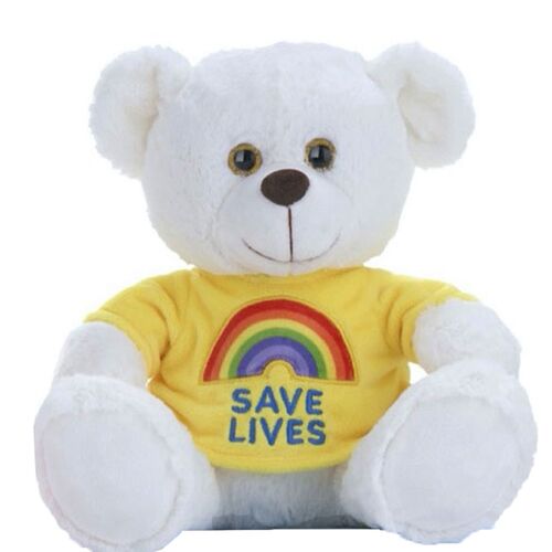 Αρκουδάκι Κίτρινη Μπλούζα "Save Lives" Ουράνιο Τόξο 26cm