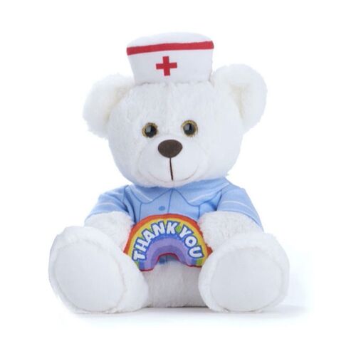 Αρκουδάκι Λούτρινο Νοσοκόμα "Thank You" Λευκό Χρώμα 26cm
