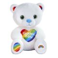 Ένα υπέροχο λούτρινο αρκουδάκι σε πολύχρωμό λευκό με καρδιά ουράνιο τόξο που γράφει "Thank You" ! Τα ματάκια του είναι αστραφτερά ασημένια με glitter.Ένα λούτρινο που φωλιάζει ευχάριστα στην αγκαλιά!