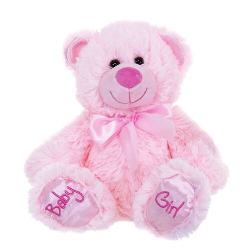 Αρκουδάκι Ροζ με φιόγκο Λούτρινο 25cm