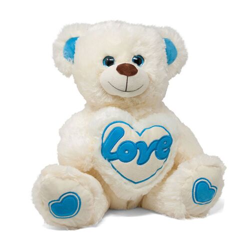 Αρκούδος Λευκός με Μπλε Χρώμα Λούτρινο 28cm Αγίου Βαλεντίνου