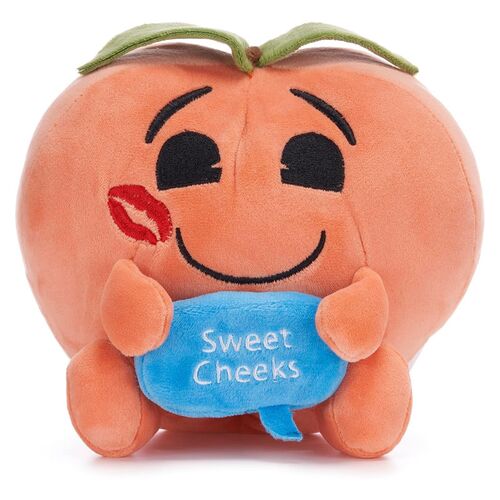Ποιος νομίζετε ότι έχει γλυκά μάγουλα, όπως αυτό το αξιολάτρευτο λούτρινο παιχνίδι Peach Emoji με το μήνυμα "Γλυκά Μάγουλα" κεντημένο μέσα σε ένα συννεφάκι ομιλίας.