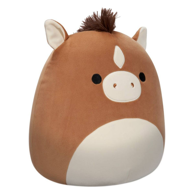 Είναι ένα χαριτωμένο λούτρινο Squishmallow σε σχήμα αλόγου, με καφέ αποχρώσεις και γλυκιά έκφραση, που το κάνουν ιδανικό για αγκαλιές και συλλογή.