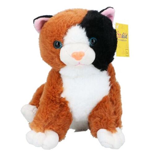 Γάτα Καφέ Λευκό και Μαύρο Χρώμα Λούτρινο 22cm