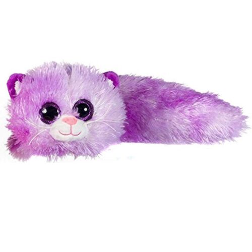 Γατάκι Μοβ χρώματος, ξαπλωτό και χνουδωτό. Πρόκειται για ένα μαλακό και ελαφρύ λούτρινο που φωλιάζει ευχάριστα στην αγκαλιά!