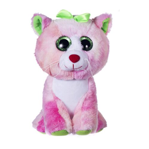 Γατούλα Με Μεγάλα Μάτια Πράσινα -Ροζ Χρώμα Λούτρινη 23cm