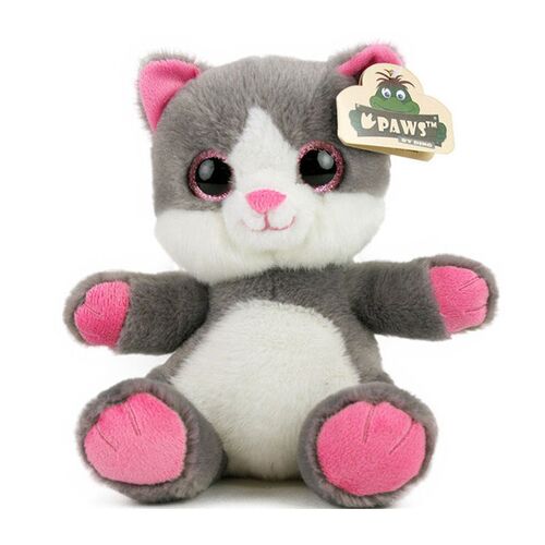 Γατάκι γκρι-άσπρου χρώματος με ροζ αυτάκια, πατουσάκια και μεγάλα μάτια. Πρόκειται για ένα μαλακό και ελαφρύ λούτρινο που φωλιάζει ευχάριστα στην αγκαλιά!