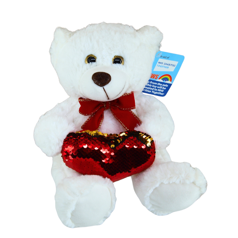 - Αρκούδα Λευκή με Κόκκινη Χρυσή Καρδιά Sequin Λούτρινο 25cm
