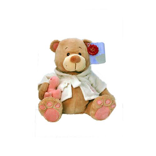 Αρκουδάκι Βρεφικό Με Μπουρνούζι Καφέ Χρώμα Για Κορίτσι Λούτρινο 15cm