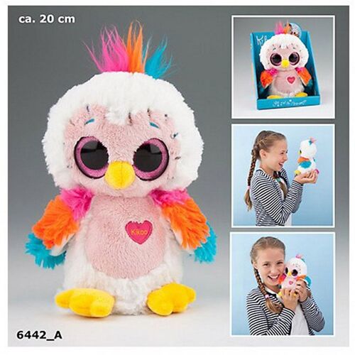 Ένα πολύχρωμο χαριτωμένο πουλάκι με μεγάλα γυαλιστερά μάτια! Το λούτρινο διαθέτει εσωτερικά μηχανισμό, ο οποίος πιέζοντας το πουλάκι, αρχίζει να ηχογραφεί τις λέξεις ή τις προτάσεις που εκφέρουμε και τις αναπαράγει, ενώ ταυτοχρόνως κουνάει το κεφαλάκι του! Το λούτρινο είναι τοποθετημένο σε ατομικό κουτί προβολής. Πρόκειται για ένα μαλακό και ελαφρύ λουτρινο που φωλιάζει ευχάριστα στην αγκαλιά!