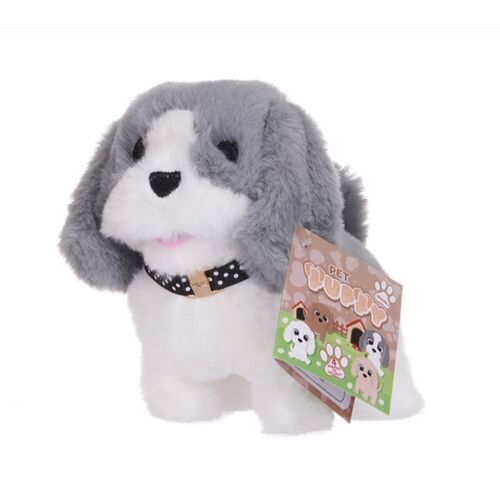 Σκυλάκι Κουτάβι με Ήχο και Κίνηση Γκρι Λευκό Χρώμα Λούτρινο 15cm