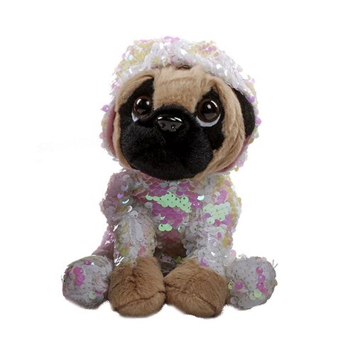 Pug Ντυμένο με Λευκό Sequin Ρούχο Λούτρινο 17cm