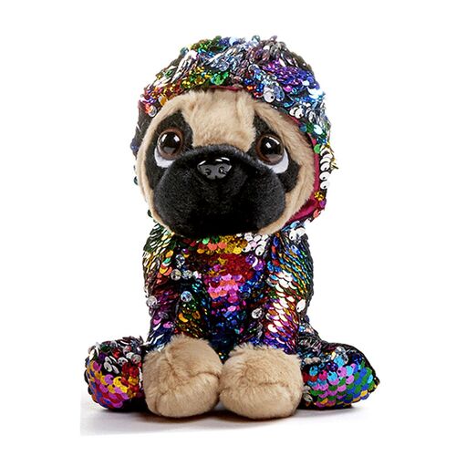 Pug Ντυμένο με Πολύχρωμο Sequin Ρούχο Λούτρινο 17cm
