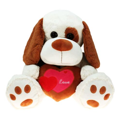 Σκύλος Με Καρδιά "Love" Καφέ με Λευκό Χρώμα Λούτρινο 38cm