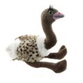 Μία στρουθοκάμηλος με μεγάλα γαλανά γυαλιστερά μάτια. Η στρουθοκάμηλος είναι καφέ χρώματος στο λαιμό και στα πόδια, το σώμα της είναι άσπρο με γκρι και το ράμφος της είναι ροζ. Πρόκειται για ένα μαλακό και ελαφρύ λουτρινο που φωλιάζει ευχάριστα στην αγκαλιά! Τα μάτια του είναι πλαστικά και έχει απαλή γούνα.