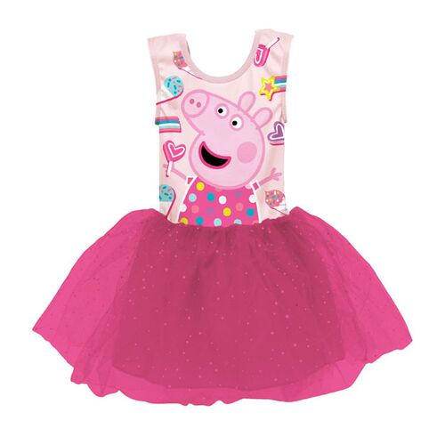 Πρόκειται για ένα υπέροχο και πρακτικό κορμάκι μπαλέτου, σε ροζ χρώμα, αμάνικο - ιδανικό για τους καλοκαιρινούς, και όχι μόνο, το οποίο φέρει στάμπα με την αγαπημένη ηρωδιάδα κινουμένων σχεδίων των παιδιών από τη Peppa Pig