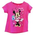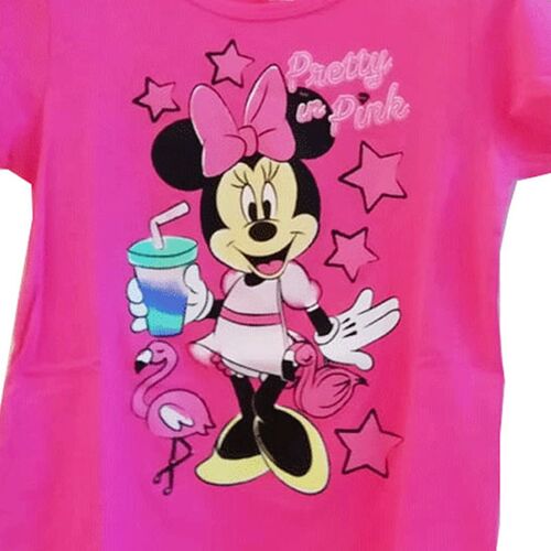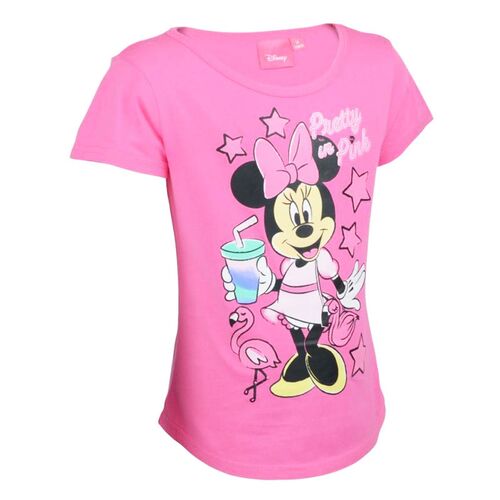 Ένα χαριτωμένο T-shirt, κοντομάνικο μπλουζάκι, με την αγαπημένη Minnie ! Η μπροστινή πλευρά του T-shirt είναι χρώματος ροζ, με ροζ λαιμόκοψη και μανικάκια, απεικονίζεται η Minnie με αστεράκια και κρατάει ένα ποτήρι στο χέρι της . Η πίσω πλευρά της μπλούζας είναι χρώματος ροζ.