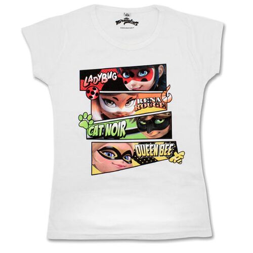 Ένα χαριτωμένο T-shirt, κοντομάνικο μπλουζάκι, με τους αγαπημένους ήρωας της σειράς!!! Το T-shirt είναι άσπρου χρώματος, και απεικονίζεται η Ladybug, ο Cat Noir, η Rena Rouge και η Queen Bee.