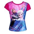 Ένα χαριτωμένο T-shirt, κοντομάνικο μπλουζάκι, με τις αγαπημένες Elsa και Anna από τη δημοφιλή σειρά "Frozen" ! Η μπροστινή πλευρά του T-shirt είναι χρώματος ροζ με γαλάζιο, με ροζ λαιμόκοψη και μανικάκια, απεικονίζονται η Elsa και η Anna . Η πίσω πλευρά της μπλούζας είναι ροζ χρώματος.