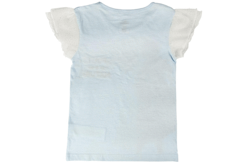 Ένα χαριτωμένο κοντομάνικο μπλουζάκι, με την αγαπημένη Έλσα από την ταινία Frozen. Το μπλουζάκι είναι βαμβακερό, χρώματος γαλάζιο και μπροστά απεικονίζεται η Έλσα. Τα μανίκια έχουν βολάν και δίνουν μια πιο χαριτωμένη εμφάνιση. Το πίσω μέρος της μπλούζας είναι γαλάζιο,