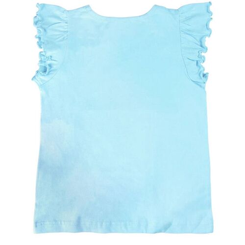 Ένα χαριτωμένο κοντομάνικο μπλουζάκι, με την αγαπημένη Έλσα από την ταινία Frozen. Το μπλουζάκι είναι βαμβακερό, χρώματος γαλάζιο και μπροστά απεικονίζεται η Έλσα. Τα μανίκια έχουν βολάν και δίνουν μια πιο χαριτωμένη εμφάνιση. Το πίσω μέρος της μπλούζας είναι γαλάζιο,