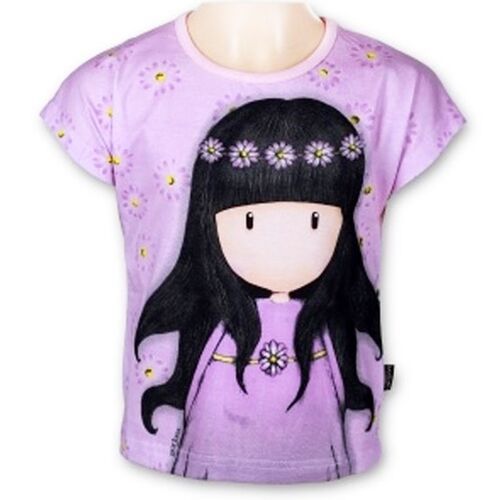 Το T-shirt είναι χρώματος Μοβ και έχει Κίτρινε μαργαρίτες και απεικονίζεται το κορίτσι από τη συλλογή Santoro gorjuss, το οποίο φοράει στα μαλλιά ένα στεφάνι από λουλούδια